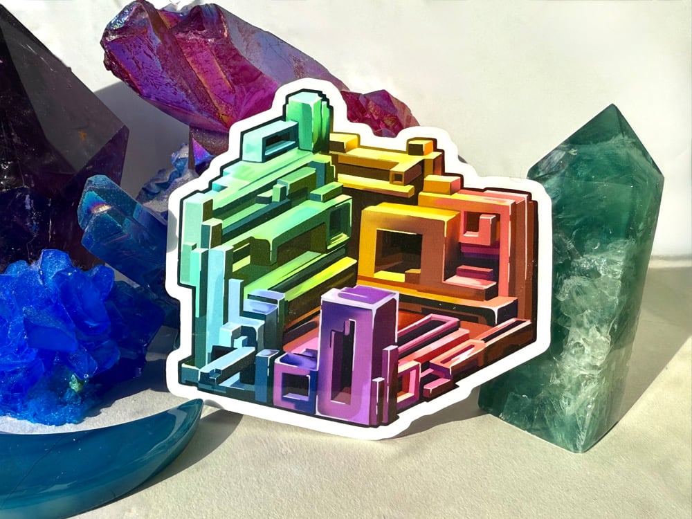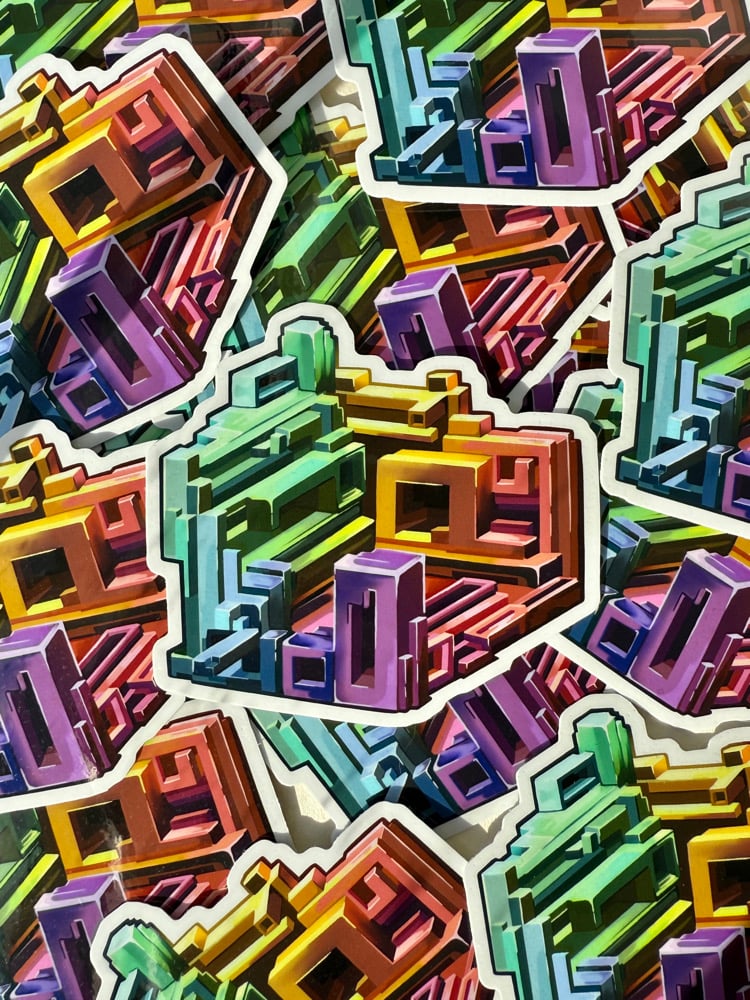 This sticker is 3" at its largest and is made of weatherproof vinyl.
