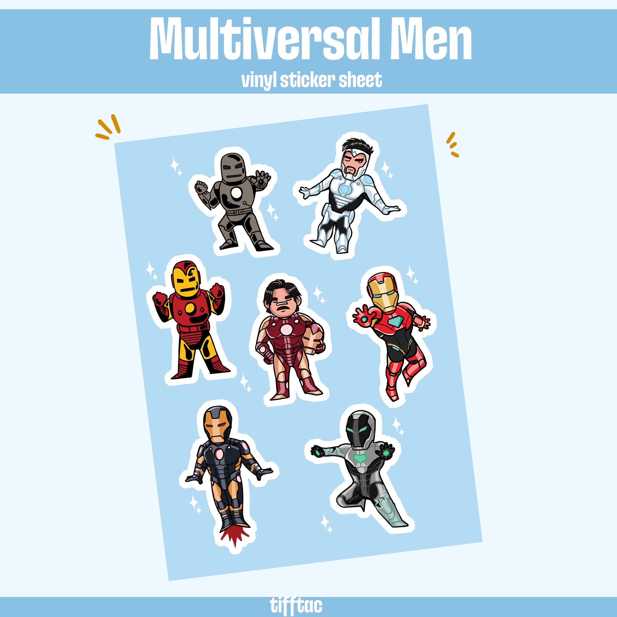 Ever wanted a whole plethora of Tony's? This sticker sheet has them all (Well, not ALL...but some of his better known suits)!