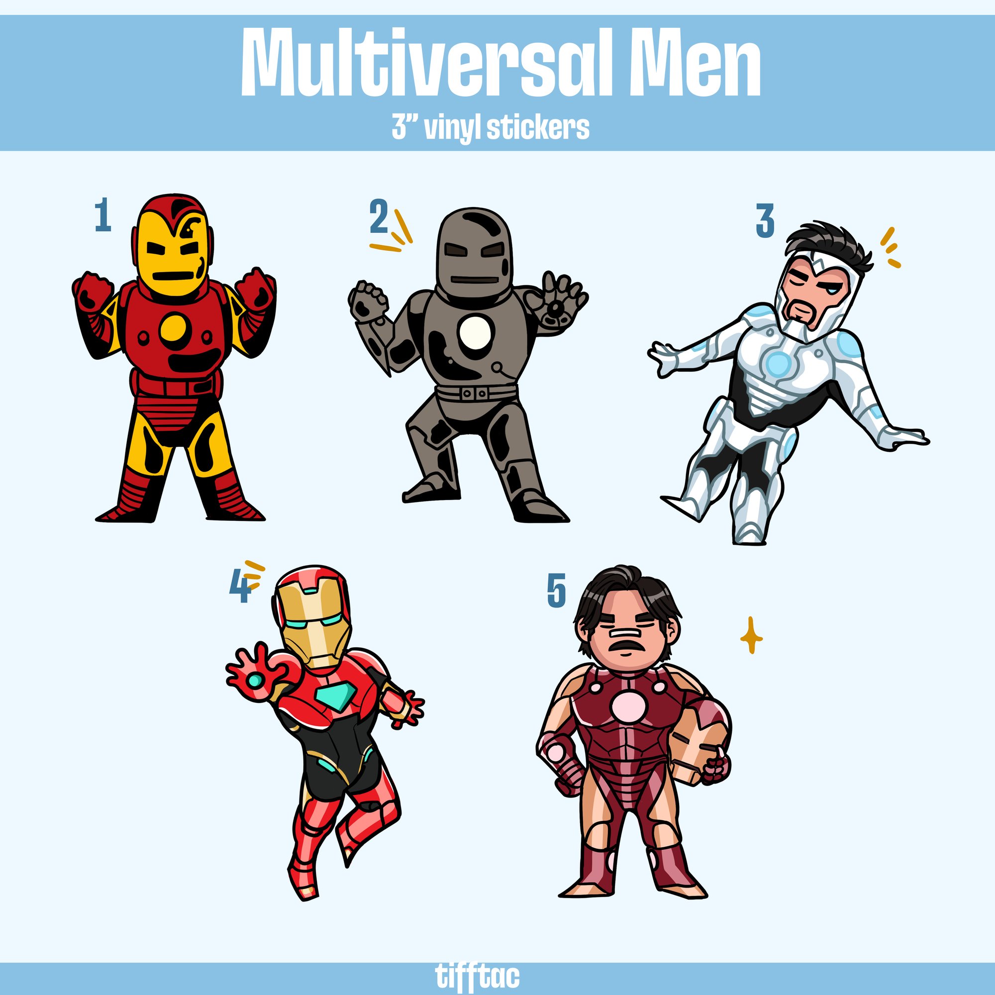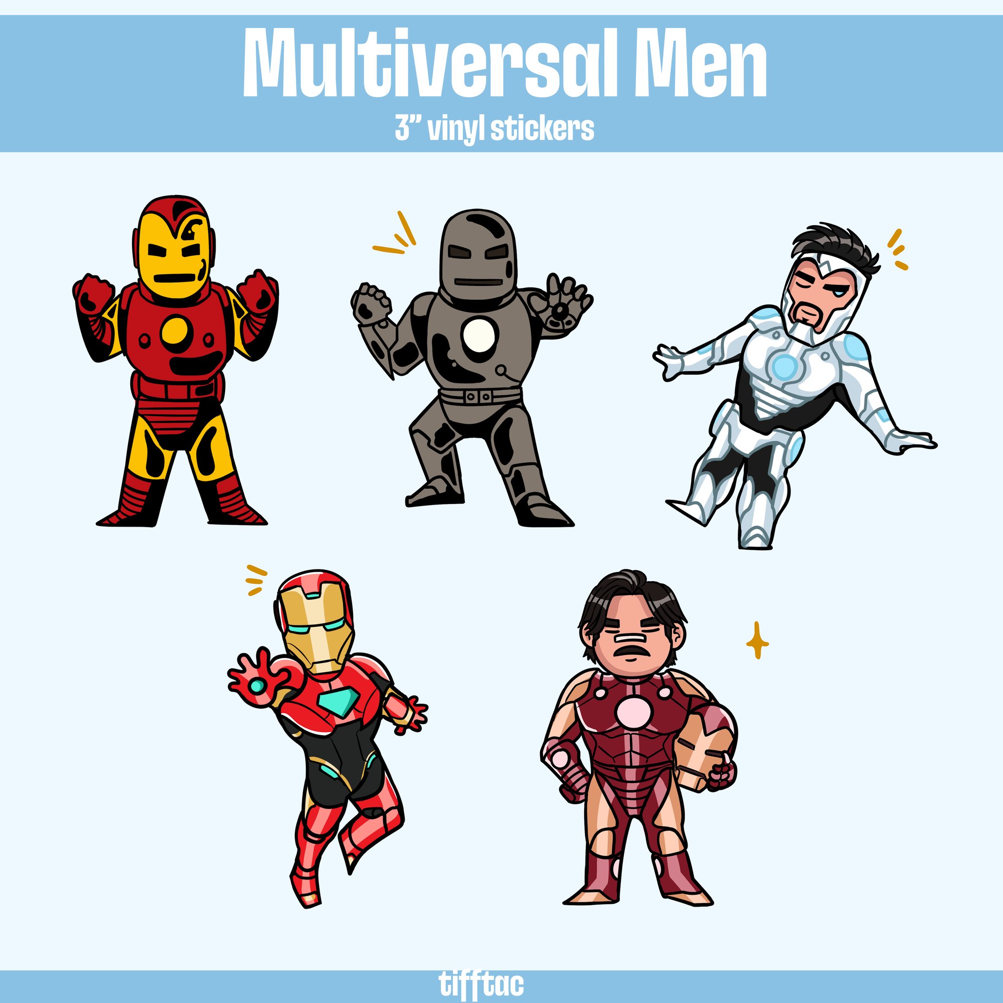 If you'd like the full set of these stickers, plus two more not listed here, check the "Multiversal Men Sticker Sheet" Listing for a reduced price!