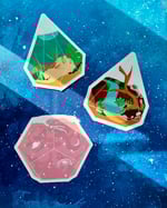 These are CLEAR vinyl stickers, that measure 3" at their largest. These stickers are weatherproof and waterproof!