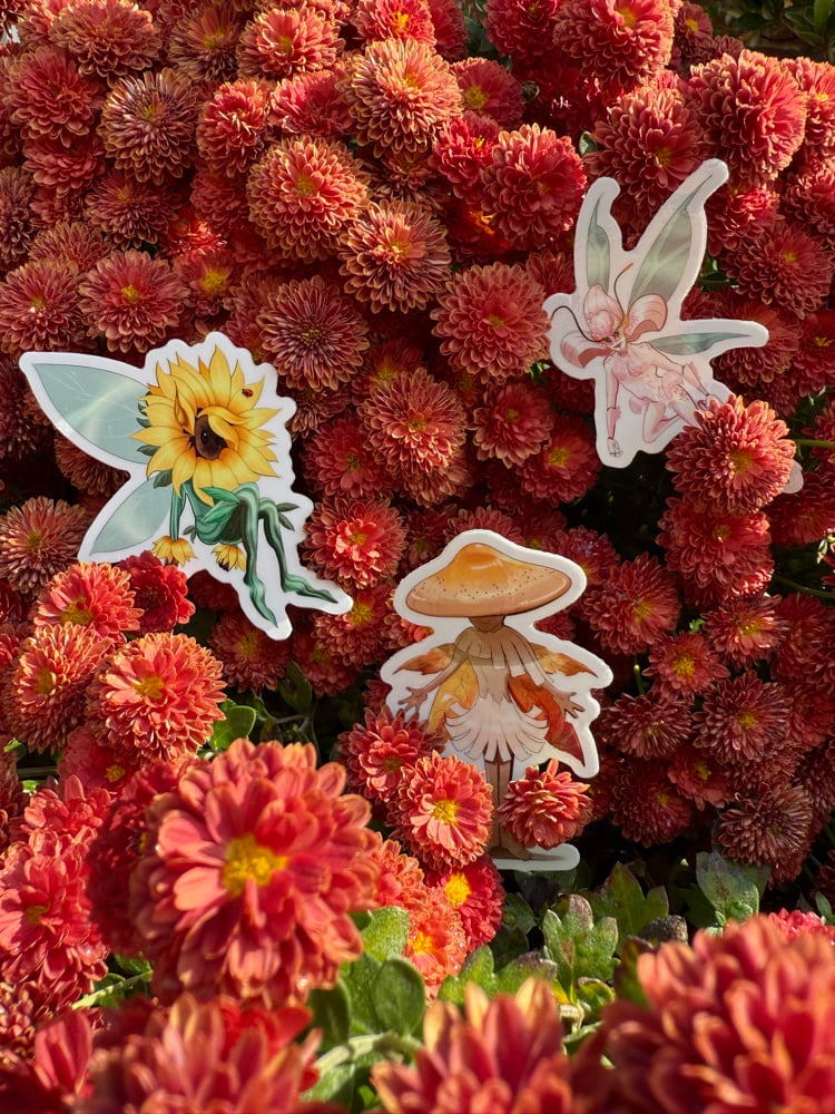 3" vinyl stickers of some mischievous, camouflaging fae!