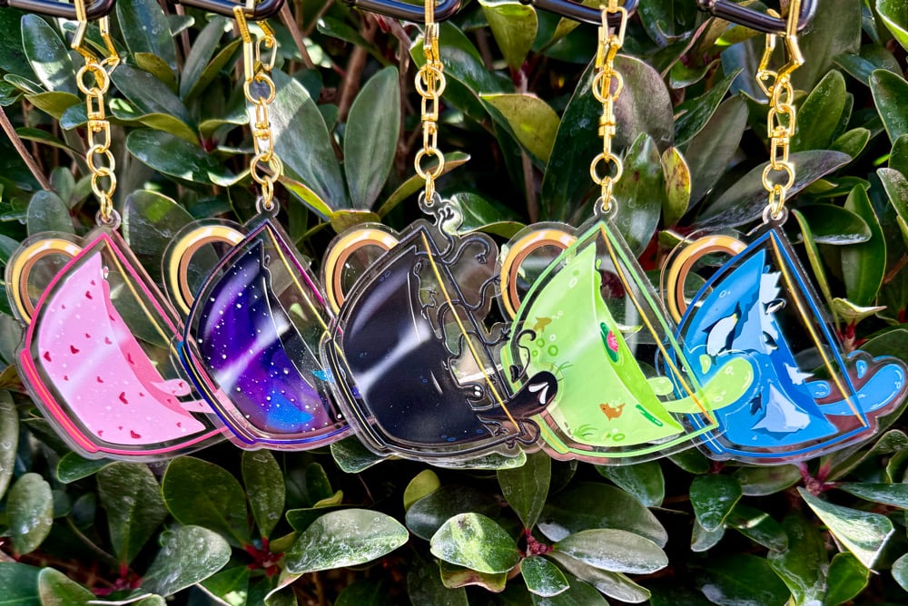 These are double-sided acrylic charms, measuring 3" at their largest.